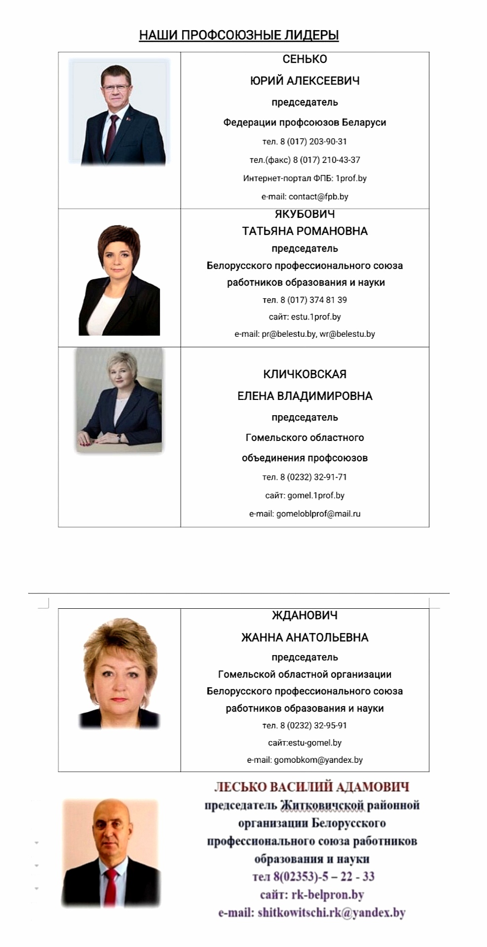 НАШИ ПРОФСОЮЗНЫЕ ЛИДЕРЫ